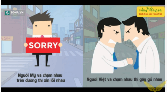 – Người Mỹ va chạm nhau trên đường thì bắt tay xin lỗi và ôn hòa. Người Việt thì múa tay, ăn đấm vào mặt, hung hăng ăn thua đủ.